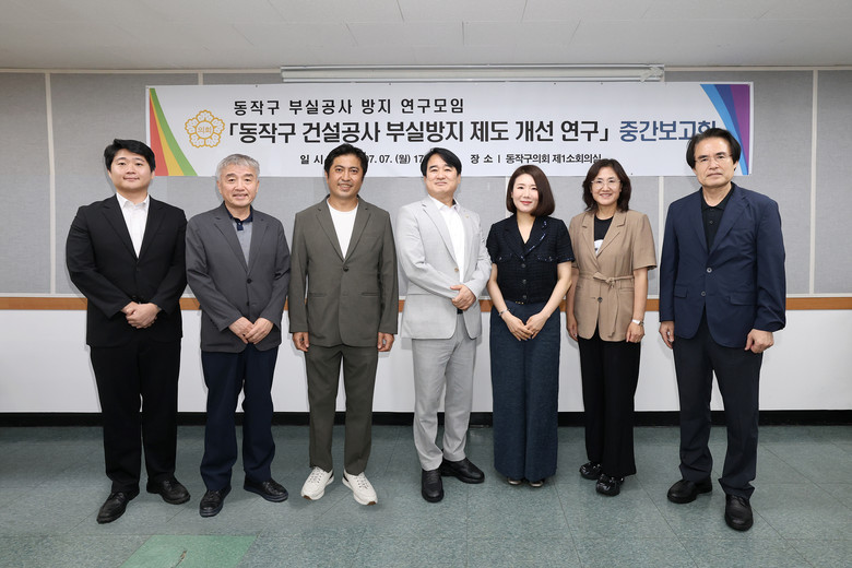 [동작구 세계타임즈=이장성 기자] 동작구의회(의장 정재천)는 지난 7일 구의회 제1소회의실에서 ‘동작구 부실공사 방지 연구모임’ 중간보고회를 개최했다.