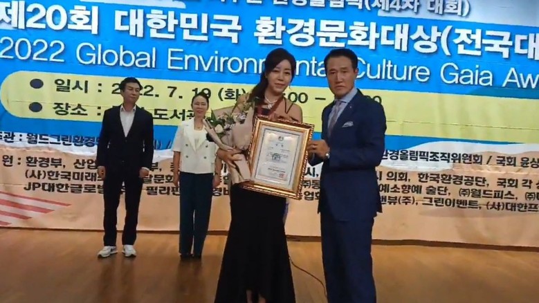 [세계타임즈 백진욱 기자] 대한민국 환경.문화대상가 지난 1972년 UN 제27차 총회에서 '인간환경회의' 개막일인 6월5일을 '세계환경의 날'로제정하고 각국 정부에서 환경보전행사 실시 권고함에 따라 1996년부터 6월5일을 법정 기념일인 '환경의 날'로 지정하고, '세계환경의 날'에 동참함에 따라 지난 2003년부터 '제1회 대한민국 환경문화대상'을 제정해 지속적으로 실시하고 있다.