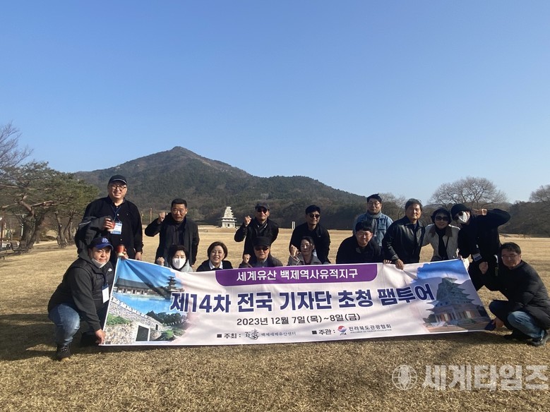 [공주·부여·익산=세계타임즈]이진화 기자 =지난 7일부터 8일까지 1박 2일 일정으로 (재)백제세계유산센터(이사장 김기영)가 주최와 전라북도관광협회(회장 조오익)가 주관으로 전국기자단 초청 '세계유산 백제역사유적지구' 팸투어가 공주·부여·익산 일원에서 진행됐다