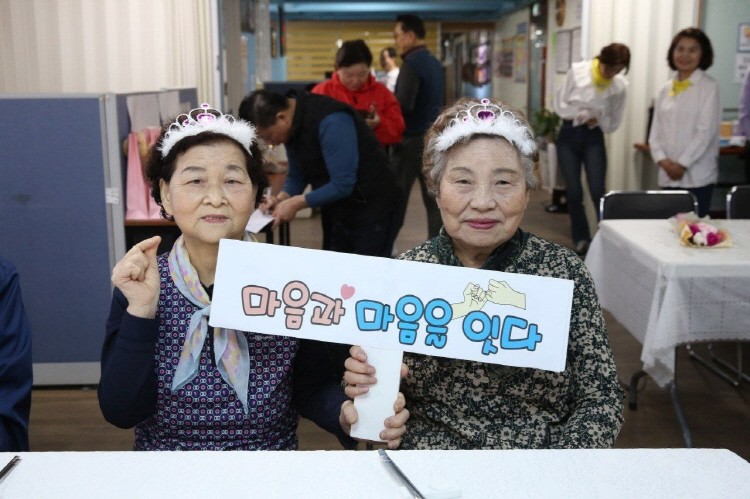 부천지부는 잔치가 끝난 후에도 어르신들 개인 휴대전화로도 생일 왕관을 쓰고 있는 사진을 찍어드리고 어깨를 주물러 드리는 등 말벗으로 어르신들과 즐거운 시간을 보냈다.