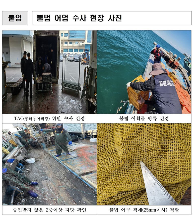 최종문 시 특별사법경찰과장은 “불법 어업 근절을 위해 수사를 계속 강화할 예정”이라며, “어업인들이 책임감을 가지고 법령을 준수하며 어족자원을 보호하는 데 앞장서 주기를 바란다”라고 밝혔다.