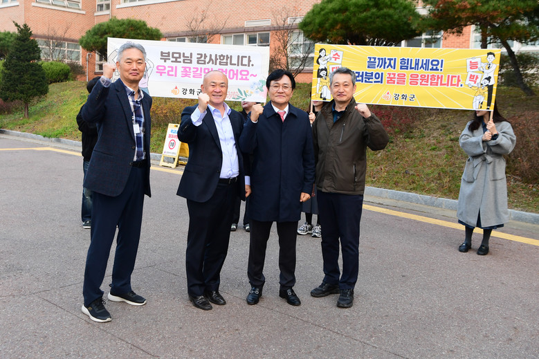 박 군수는 이른 아침부터 강화고·강화여고 관내 수능장 두 곳을 돌며 ‘여러분의 노력은 오늘 빛날 것입니다’라는 격려 피켓을 들고, 수험생들에게 격려를, 학부모들에게는 감사의 마음을 전달했다.
