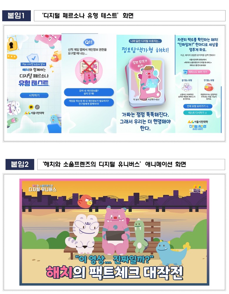 ‘디지털 페르소나 유형 테스트’는 서울시평생교육진흥원 누리집(slei.seoul.kr)에서 무료로 참여할 수 있으며, 애니메이션 전편은 서울시민대학 유튜브 채널(youtube.com/@seoulsimin)에서도 확인할 수 있다.