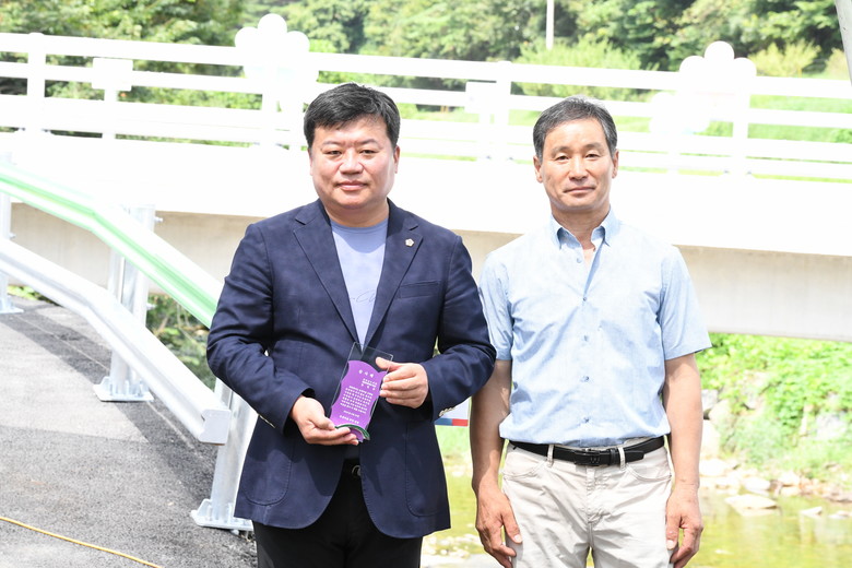 이명재 유경마을 이장은 “새로운 교량 건설 덕분에 주민들이 더 이상 침수 위험에 대한 걱정 없이 안전하게 교량을 이용할 수 있게 되었다”며 주민들을 대표해 감사패를 전달했다.