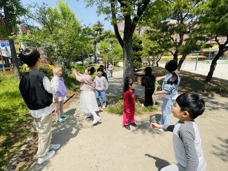 어린이날 기념 놀이 한마당은 유치원 동생들이 초등학교 형님들에게 막대 비눗방울 선물을 건네면서 함께 놀이하고 끌어준 것에 대한 고마운 마음을 표현하며 마무리 되었다.