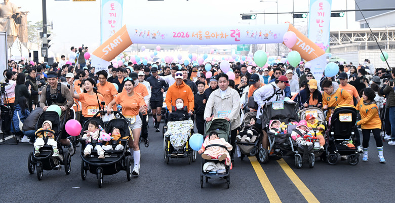 지난해 5월 첫 행사 이후 서울에서 세 번째로 열린 이날 ‘2026 유아차 런’에는 영유아, 초등학생 등 자녀를 동반한 가족 총 2만여 명이 참가했다. 출발 및 골인 지점에서는 유아차 꾸밈존, 완주 인증 포토월을 비롯해 다양한 문화 공연과 체험 프로그램이 진행됐으며 특히 여의도공원에 마련된 ‘여기저기 키즈카페’와 ‘서울가족체력장’은 많은 가족이 참여하며 큰 인기를 끌었다.