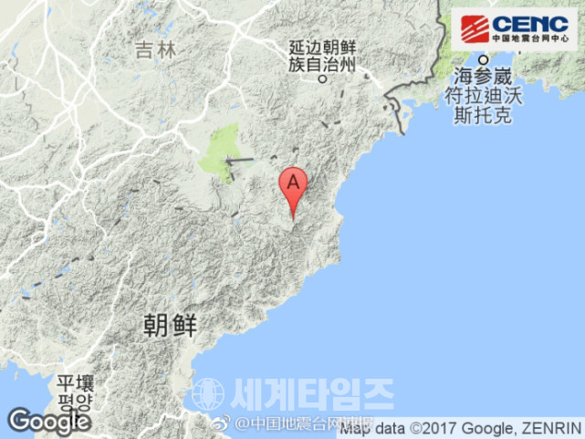 지진대망은 지진이 이날 오전 11시30분(한국시간 12시30분)께 북위 41.35도, 동경 129.11도를 진앙으로 일어났다며 진원 깊이가 0km라고 전했다.