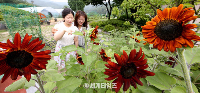 대전 동구 추동 대청호자연생태관과 대청호자연수변공원 일원이 2600여 본의 빨간 해바라기로 곱게 물들며, 때 이른 폭염과 장마에 지친 시민들에게 활력소가 되고 있다.
