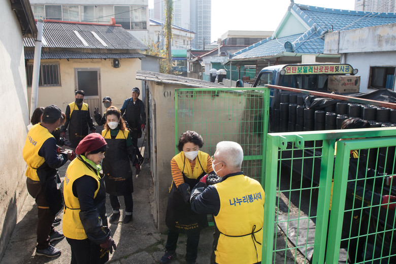 지난 6일 김 의원은 나누리 봉사단 25여 명과 함께 조촌동·경암동·구암동·개정동·중앙동 등 소외된 이웃 가정 10세대에 사랑의 연탄 3,000장을 직접 배달하고 위로 격려했다.