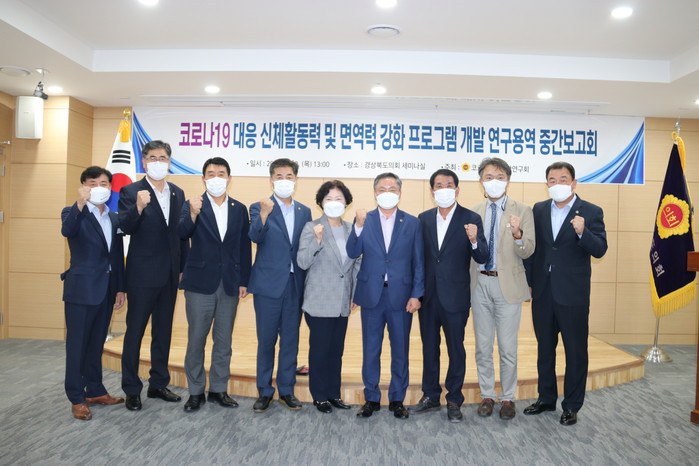[경북=세계타임즈 한성국 기자] 경북도의회 의원연구단체인 경상북도 코로나대응방안연구회(대표 이동업 의원, 포항)는 30일 도의회 세미나실에서 ‘코로나19 대응 신체활동력 및 면역력 강화 프로그램 개발 연구용역’ 중간보고회를 개최했다.