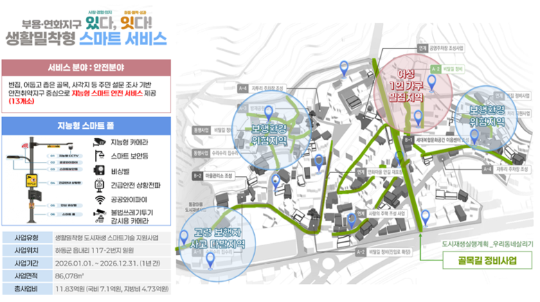 하동군은 빈집, 어둡고 좁은 골목 등 안전취약지구에 지능형 CCTV, 비상벨, 긴급안전 상황전파 시스템 등을 갖춘 ‘지능형 기둥(스마트 폴)’을 설치해, 주거·보행 안전을 강화한다.