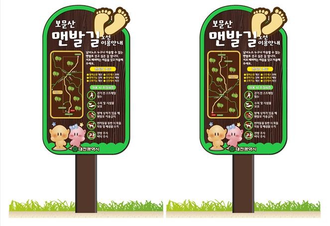 보문산 남보살 약수터를 출발해 보훈공원까지 이어지는 왕복 1.6km 맨발길 코스는, 기존 맨발 이용객들의 이용이 많은 구간으로 마사토 등 맨발 보행에 적합한 자연 소재를 사용하여 발의 피로 완화 및 혈액순환 개선에 도움이 되도록 정비했다.