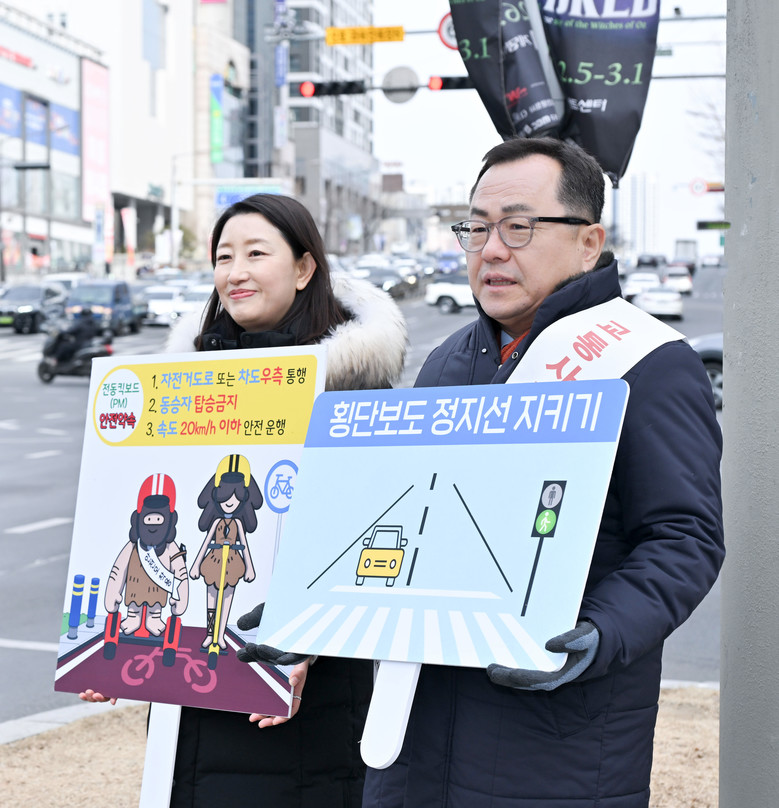 이번 캠페인은 1월 30일(금) 오후 2시부터 3시까지 1시간가량 달서구 죽전네거리 일원에서 진행됐으며, 대구경찰청, 달서구청, 한국도로교통공단 대구본부, 한국교통안전공단 대구경북본부, 대구녹색어머니연합회 등 유관기관과 단체가 함께 참여해 민관 협력의 의미를 더했다.