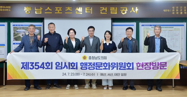 [충남 세계타임즈=백택기 기자] 충남도의회 행정문화위원회(위원장 박기영)는 23일 충남스포츠센터, 해미국제성지, 충남창작스튜디오 등 행정문화위원회 소관업무의 현장을 방문해 운영 상황을 점검하고, 도민의 삶의 질 향상을 위한 정책을 제안했다.