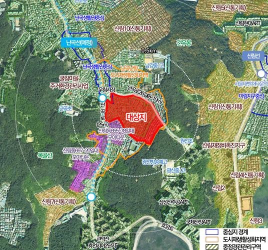 | ▲ 위치도 (관악구 신림동 650번지 일대) |