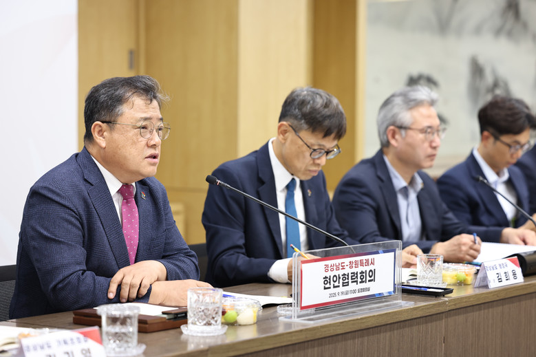 - 북극항로 거점 육성, 항만비즈니스센터 조성 등 한목소리 내기로 [세계타임즈=경남 최성룡 기자] 경남도는 19일 도청 도정회의실에서 창원시와 ‘경상남도-창원특례시 현안협력회의’를 개최했다. 이번 회의는 지난 5월에 이은 4차 회의로, 박명균 경남도 행정부지사, 장금용 창원시장 권한대행을 비롯한 경남도·창원시 실국장급 공무원 등이 참석했다.