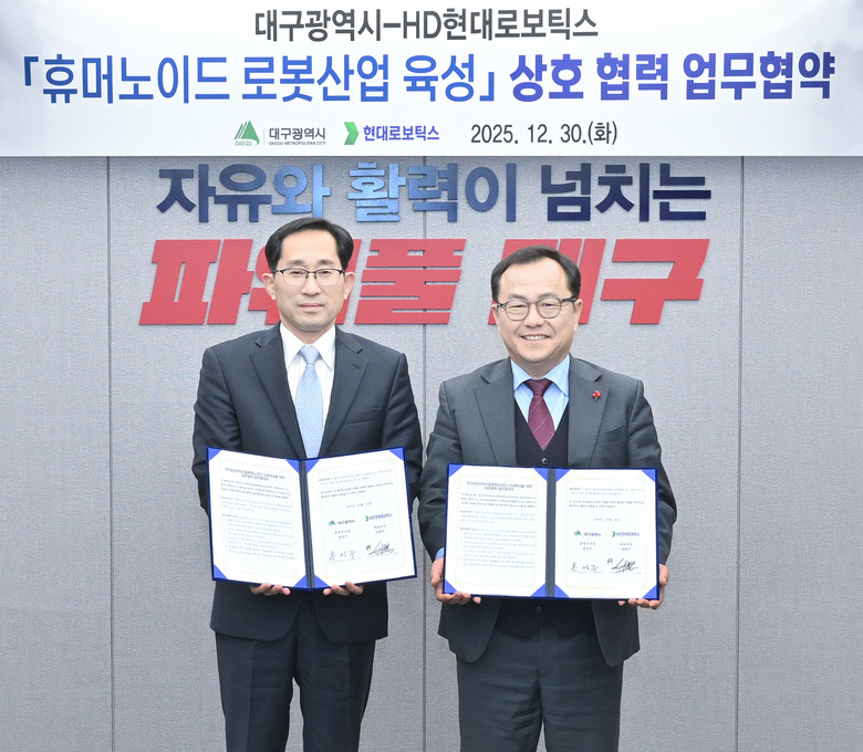 이번 협약을 통해 양 기관은 대구의 휴머노이드 로봇산업 육성에 적극 협력하고, 지역 전문 인력 채용 및 로봇 부품 공급망 강화를 통해 지역 상생 발전에도 기여할 예정이다.