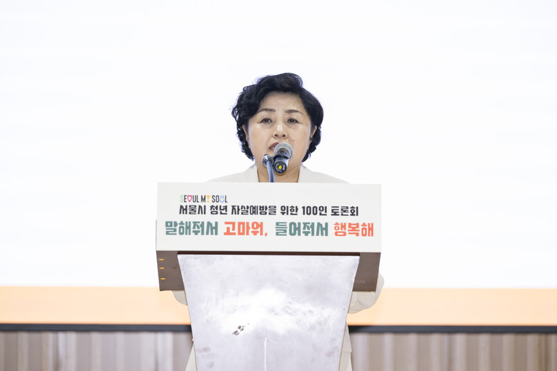[서울 세계타임즈=이장성 기자] 서울특별시의회 보건복지위원회 김영옥 위원장(국민의힘, 광진3)은 7월 4일(금) 오후 2시, 서울시의회 본관 8층 다목적홀에서 개최된 「서울시 청년 자살예방을 위한 100인 토론회」에 참석하여 축사를 통해 청년들에게 따뜻한 격려와 지지를 전하였다.