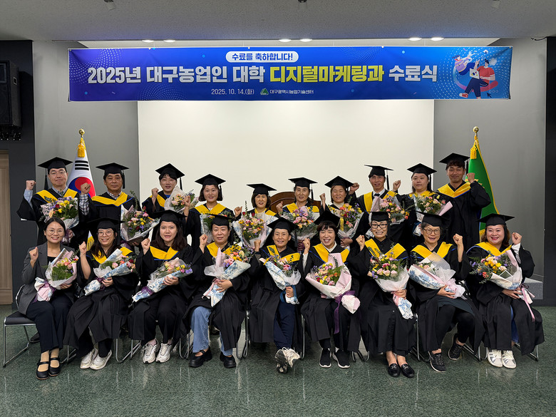 ▸ 스마트스토어, 라이브커머스, 숏폼 제작 등 디지털 유통 역량 강화 [세계타임즈=대구 한윤석 기자] 대구광역시농업기술센터는 지난 10월 14일, 2025년 대구농업인대학 디지털마케팅과정 5개월 일정을 마치고 수료식을 개최했다. 이번 교육은 5월 13일부터 10월 14일까지 총 16회, 72시간 동안 진행됐다.