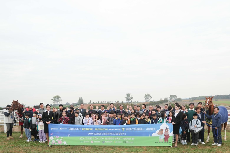 [세계타임즈 = 송민수 기자] 한국마사회(회장 정기환)와 서울,부경마주협회(조용학, 신우철)가 지난 1일 ‘당대불패’와 ‘클린업조이’를 환영하는 「Welcome to 농협안성팜랜드, feat. 더러브렛 복지기금 출연식」 행사를 성황리에 개최했다.
