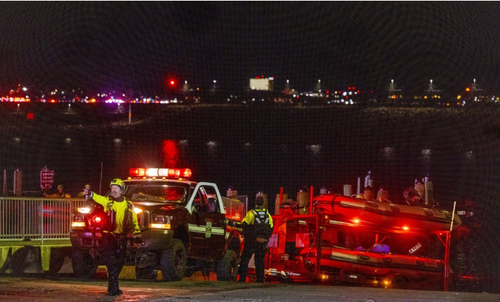 29일(현지시간) 미국 워싱턴 로널드 레이건 공항 여객기 추락 현장 인근 포토맥 강 수색을 하는 모습