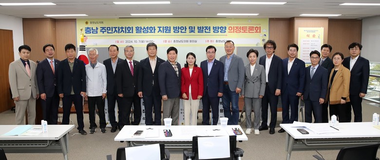 [충남 세계타임즈=백택기 기자] 충남도의회는 7일 도의회 회의실에서 ‘충남 주민자치회 활성화 지원 방안 및 발전 방향’을 주제로 의정토론회를 개최했다.