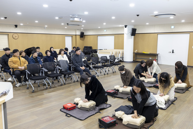이날 교육은 전문 강사의 지도 아래 ▲응급상황 발생 시 행동 요령 ▲심폐소생술(CPR) 이론 및 실습 ▲자동심장충격기(AED) 사용법 ▲기도 폐쇄 시 응급처치법(하임리히법) 등 실무 위주의 프로그램으로 진행됐다. 특히 참석자들은 교육용 마네킹을 활용해 가슴 압박의 위치와 강도를 직접 체득하는 등 실전과 같은 연습에 임했다.