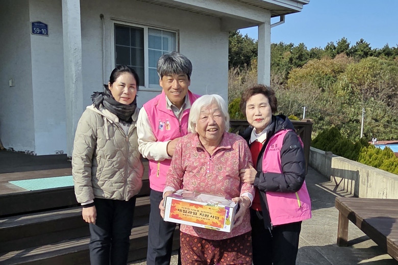 이번 사업은 겨울을 앞두고 복지 사각지대에 놓인 어르신들의 건강과 정서적 안정을 도모하기 위해 마련됐으며, 협의체 위원들과 노인맞춤돌봄 생활지원사들이 함께 해당 가정을 직접 방문하여 영흥면에서 생산된 제철과일(포도)을 전달하고, 더불어 말벗이 되어 안부를 살피는 등 정서적 교감 활동도 병행했다.