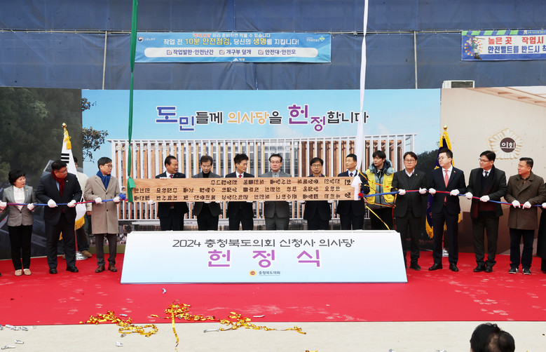헌정식은 제12대 충북도의회 의원(35명) 전원이 신청사 의사당을 164만 도민에게 바친다는 상징적 의미를 담고 있으며 이양섭 의장 및 도의원, 김영환 충청북도지사, 윤건영 충청북도교육감, 진상화 충북개발공사 사장 등이 참석했다.