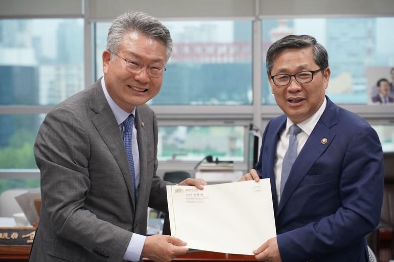이날 의원실에 따르면 김 의원은 이 자리에서 여수시 제 5차 문화도시 지정과 여자만 세계자연문화유산 등재, 여수세계박람회장 K컬쳐 중심센터 조성, 여수 진남롤러경기장 전천후시설 설치 지원 등을 요청했다.