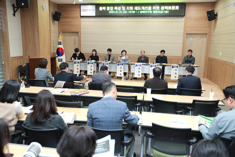 [충북 세계타임즈=이현진 기자] 충북도의회 산업경제위원회(위원장 김꽃임)는 21일 충북연구원 대회의실에서 ‘충북 창업 육성 및 지원 제도개선을 위한 정책토론회’를 열어 충북의 창업 생태계 강화 방안을 논의했다.
