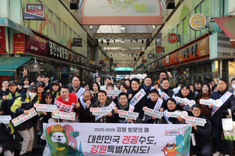 이번 장보기 행사는 특히「2025-2026 강원 방문의 해」를 맞아 관광을 통해 경기침체로 어려움을 겪고 있는 전통시장에 활력을 불어넣고자 최성현 대표이사를 비롯한 임직원 30여 명이 참여했다.