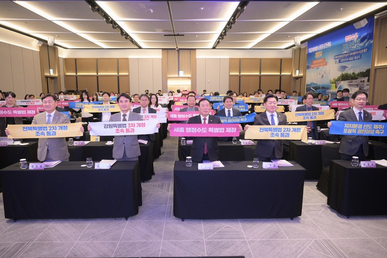 최민호 시장은 “민선 지방자치 부활 30년을 맞아 많은 성과를 이뤘지만 여전히 과제는 많이 남아있다”며 “특별법은 각 지역의 발전을 이끄는 핵심적인 성장동력인 만큼 국회와 정부가 특별자치시도의 실질적 권한 강화와 제도 정착을 위해 적극 지원해야 한다”고 강조했다.