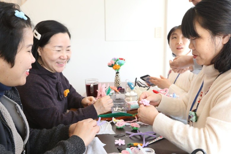 | ▲‘세계여성평화 네트워크 정기모임’ 참석자들이 모루꽃 인형을 만들고 있다. |