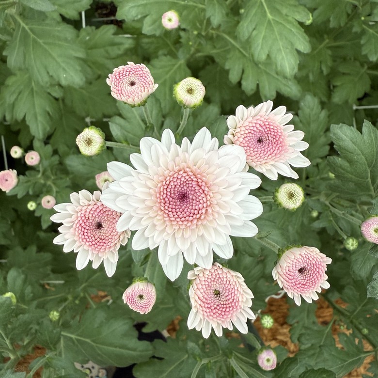 국화 ‘핑크링엔디(Pinkring ND)’는 분홍색 홑꽃, ‘크리스탈엔디(Crystal ND)’는 백색 홑꽃 품종으로 두 품종 모두 개화 소요일이 약 6주로 짧고, 줄기가 굵고 튼튼해 재배가 쉽다. ‘스위티엔디(Sweety ND)’는 연분홍색 겹꽃 형태이며, 꽃잎 수가 241매로 풍성하고 고온기에도 꽃색 탈색이 적다.