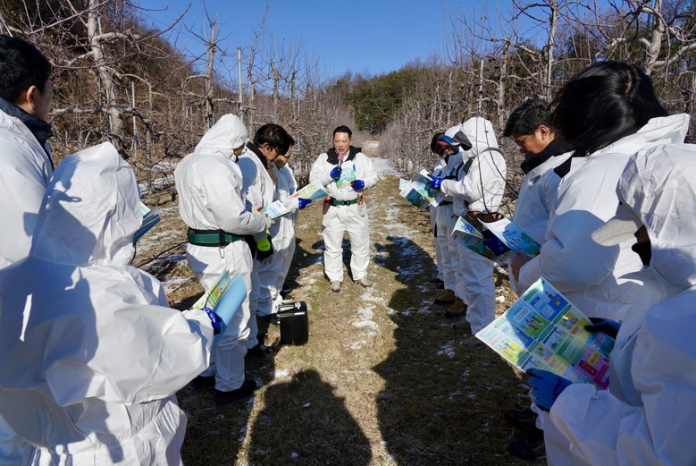 이를 위해 경상북도는 13일 과수화상병 발생 시군인 영주시 주요 사과 과원을 대상으로 도·시군, 농업인 단체와 함께 사전 예방을 위한 합동 예찰 했으며, 현장에서는 궤양 제거 방법, 전정 시 작업과 소독 요령 등에 대한 현장점검과 기술지원도 함께 추진했다.