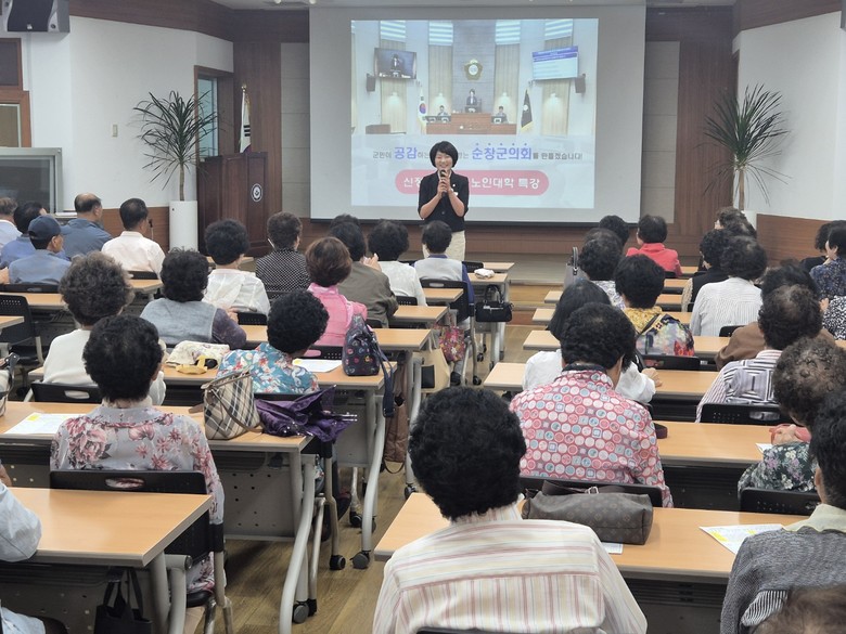 [순창군=세계타임즈 신승민 기자] 순창군의회 신정이 의장이 지난 20일 순창군 노인대학에서 100여명의 학생을 대상으로 ‘군민이 공감하는 신뢰받는 순창군의회 의정활동’이라는 주제로 유쾌한 특강을 펼쳤다.