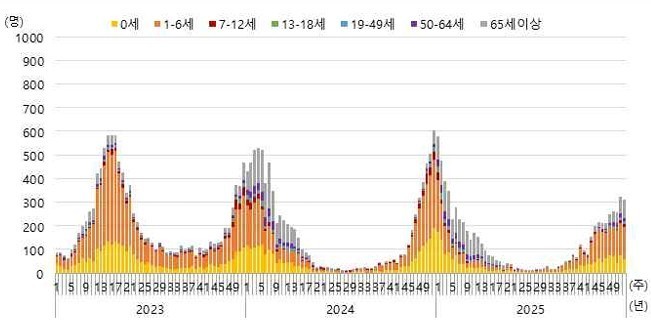 | ▲ 연령별 발생추이(2023-2025) |