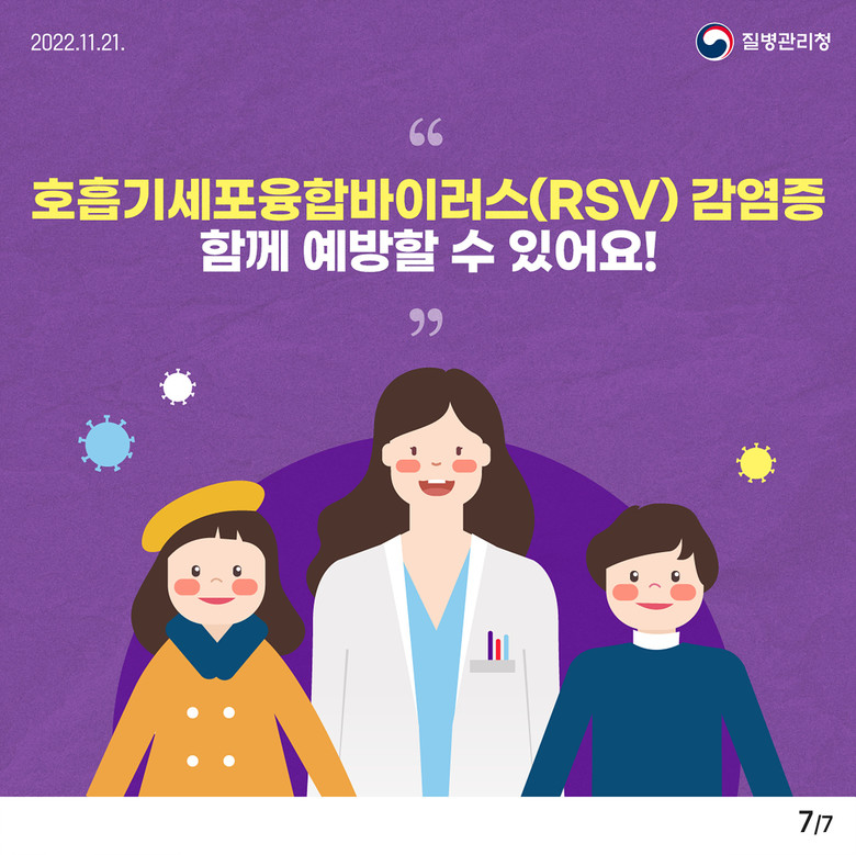 급성호흡기감염병인 호흡기세포융합바이러스(Respiratory Syncytial Virus, RSV)는 제4급 법정감염병으로 매년 10월부터 이듬해 3월까지 주로 발생한다.
