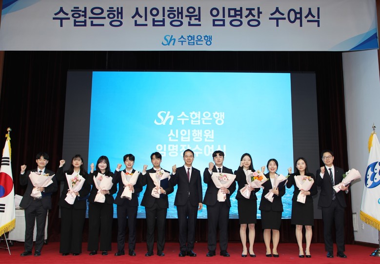 신학기 은행장은 격려사를 통해 “신입행원다운 패기와 열정으로 주어진 역할에 최선을 다하고 도전을 두려워하지 않는 수협인이 되어달라”고 당부하며 “슬기로운 자세로 선배들을 따르고 함께 미션을 수행하며 멋진 팀워크를 발휘하다 보면 그동안 꿈꿔운 인생 최고의 순간을 이뤄낼 수 있을 것”이라고 격려했다.