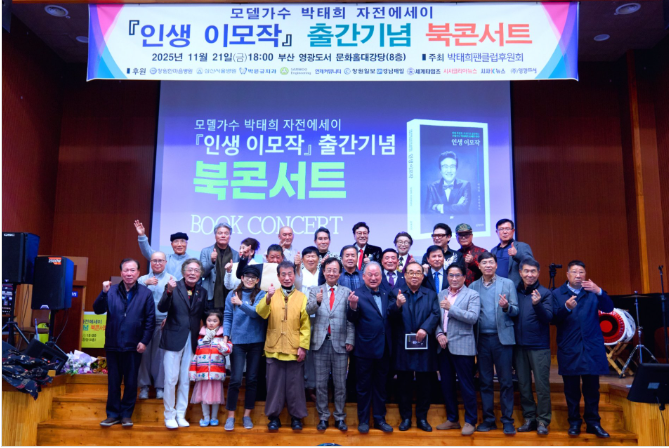 [세계타임즈]최성룡기자 = 지난 11월 21일(금) 모델가수 박태희의“인생 이모작″ 북 콘서트가 부산 서면 영광도서 8층에서 대성항리에 끝났다.