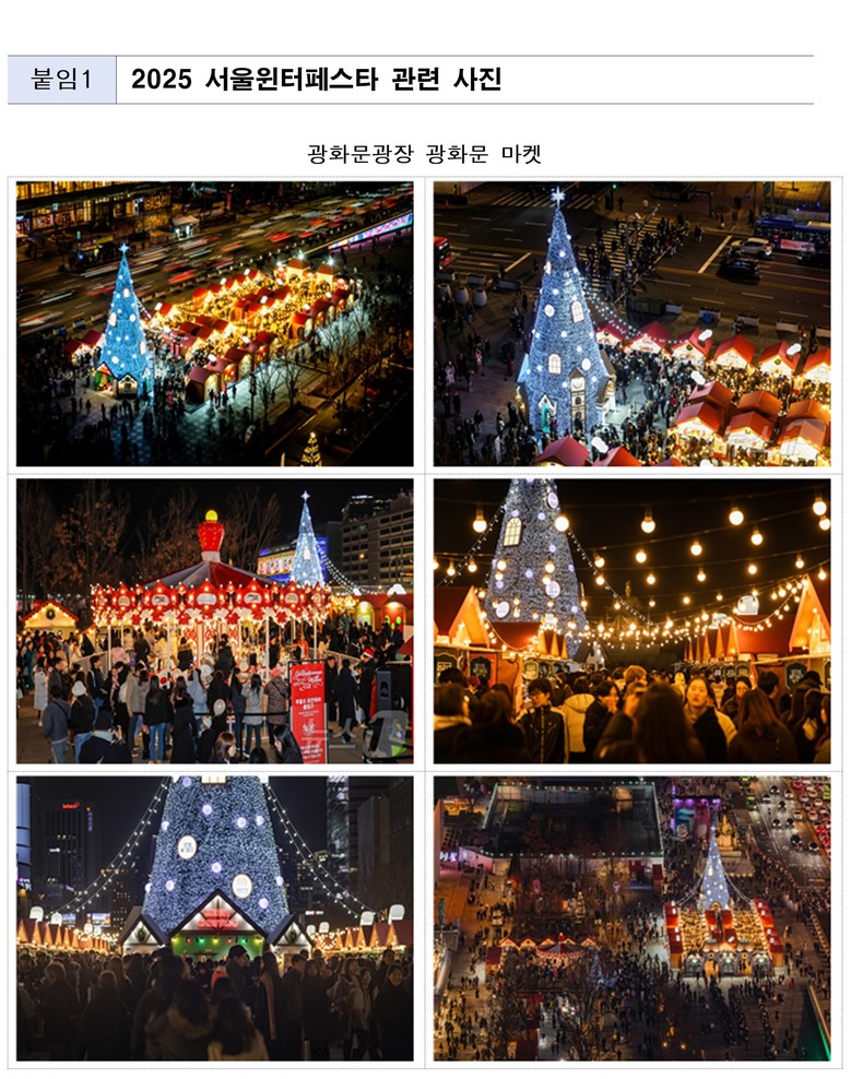 김태희 서울시 문화본부장은 “서울윈터페스타가 시민들의 사랑과 세계적인 관심 속에 서울을 대표하는 매력적인 겨울 자산으로 성장했다”며 “남은 기간에도 안전 관리에 만전을 기하여, 방문해주시는 모든 분이 빛나는 서울의 겨울을 행복하게 추억할 수 있도록 최선을 다하겠다”라고 말했다.