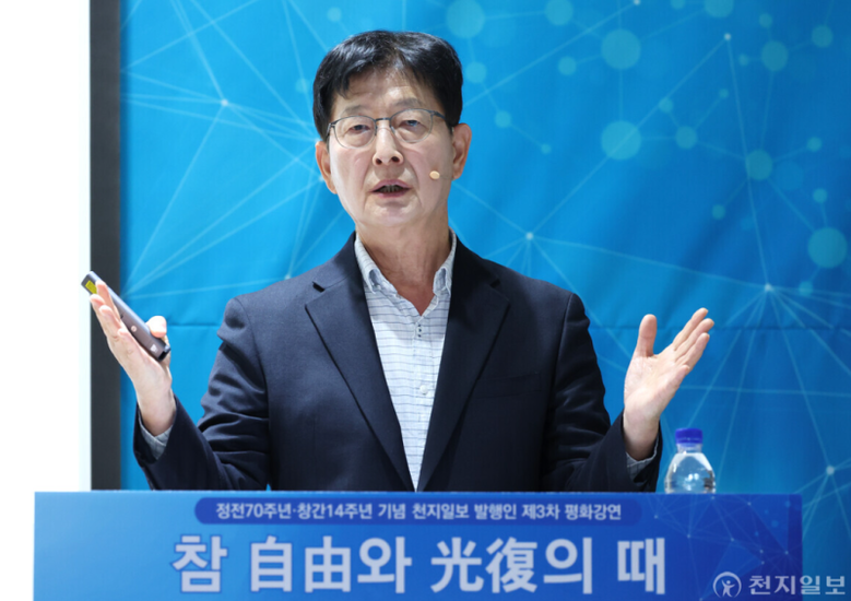 [세계타임즈 = 백진욱 기자] 정전70주년·창간14주년을 맞아 이상면 천지일보 발행인이 24일 3차 평화강연을 진행했다.