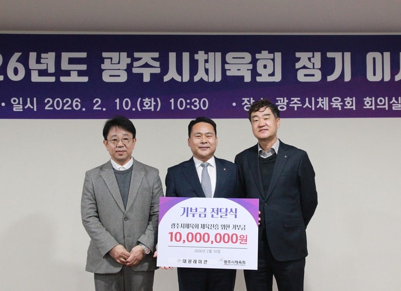 이에 대해 박범식 광주시체육회장은 “지역 체육 발전을 위해 따뜻한 나눔을 실천해 주신 진성재 대표와 ㈜대광레미콘에 감사드린다”며 “기부의 뜻이 현장에서 실질적인 성과로 이어질 수 있도록 책임감 있게 활용하겠다”고 밝혔다.
