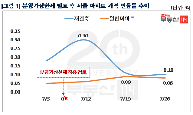 민간택지 분양가상한제 적용이 임박해졌지만 시장의 충격은 지난 주에 비해 완화된 모습이다. 서초구 잠원동 잠원동아, 강남구 청담건영 등 리모델링 추진이 논의되는 일부 단지를 중심으로는 기대감도 조성되는 분위기다. 입지나 단지 노후도, 분양가상한제 사정권에 드는지 여부에 따라 서울 아파트값이 혼조세를 보이고 있다. 정부가 강남권을 비롯한 서울 아파트 가격 동향을 예의 주시하고 있는데다 분양가상한제 외에 추가 규제가 나올 가능성도 있어 일단 집값 상승세 확대에는 제동이 걸릴 것으로 보인다.