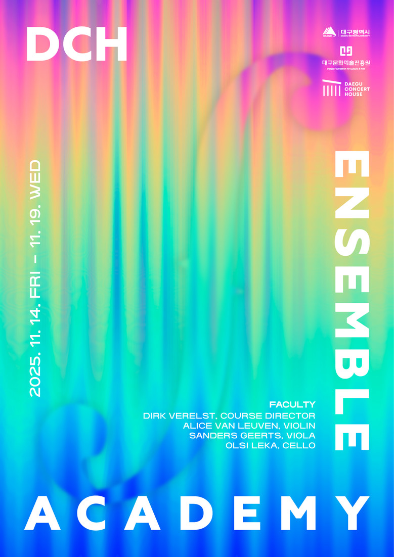 참가자들은 이들 교수진에게 11월 14일(금)부터 18일(화)까지 앙상블, 마스터클래스, 레퍼토어 레슨 등 심화 교육을 받고, 11월 19일(수) 저녁 7시 30분, 대구콘서트하우스 챔버홀에서 열리는 「DCH 앙상블 스테이지」무대에 교수진과 함께 오른다.