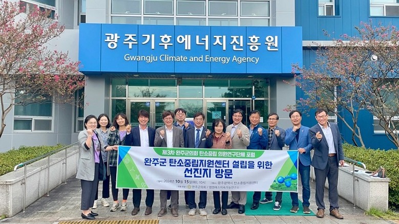 [완주군의회=세계타임즈 이상호 기자] 완주군의회 탄소중립 의원연구단체는 지난 15일 탄소중립 정책 개발과 실천 방향을 모색하기 위해 광주기후에너지진흥원(이하 진흥원)을 방문했다.