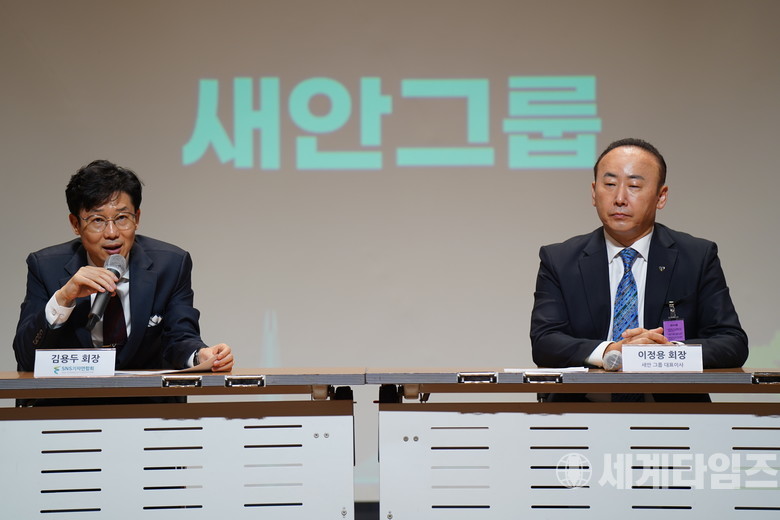 [세계타임즈 = 백진욱 기자] 김용두 ICAE2030 공동의장과 이정용 새안그룹 대표이사가 31일 오후 국회의사당 국회의원회관 대회의실에서 열린 '지구환경 국제 컨퍼런스 및 인터내셔널리더어워드 시상식'이 열리기 전 기자회견을 하고 있다.