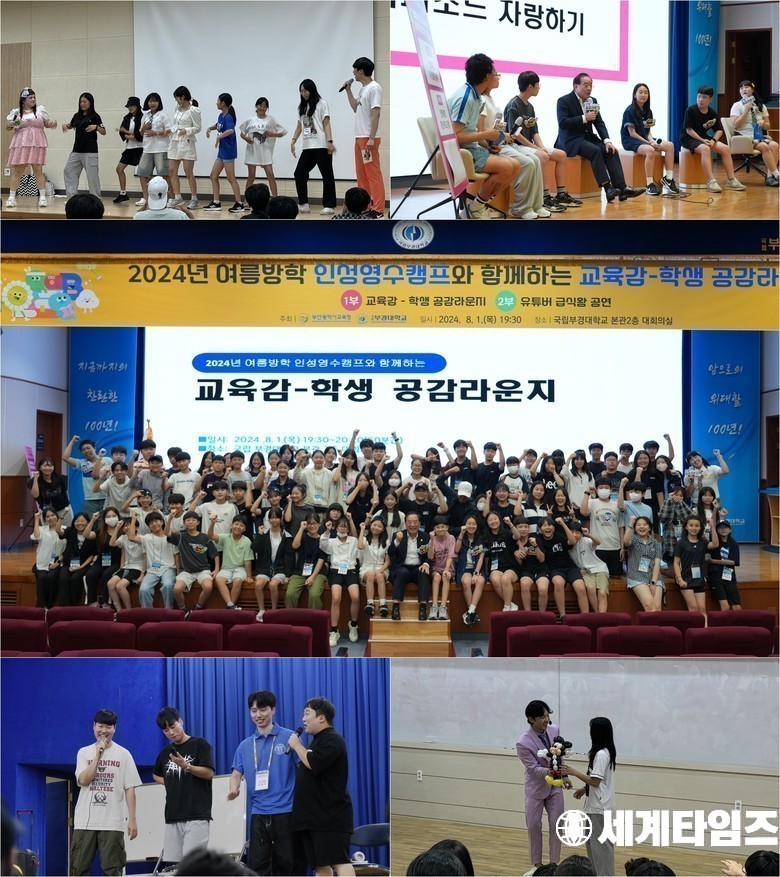 특히 8월 1일(목)에는 하윤수 부산시 교육감이 참석, ‘교육감-학생 공감 라운지’에 급식왕 생글이와 티라노가 패널로 참석해 토크 콘서트를 진행했다. ‘인성 영수캠프’를 통한 학력체인지에 대해 교육감과 학생 간의 진솔한 소통과 공감을 나누는 시간이었다.