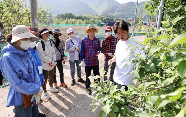 이날 박문희 의장과 의회사무처 직원 80여명은 주말도 반납하고 청주시 상당구 미원면 농가를 방문해 사과접과, 잡초 제거 등에 일손을 보태며 구슬땀을 흘렸다.